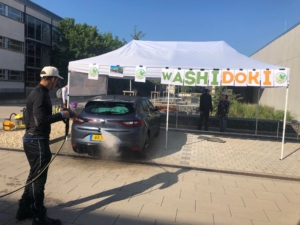 L’opération Washidoki a commencé ce matin et durera toute la semaine au LTC. Les élèves lavent des voitures pour financer leur projet solidaire au Brésil en août.
